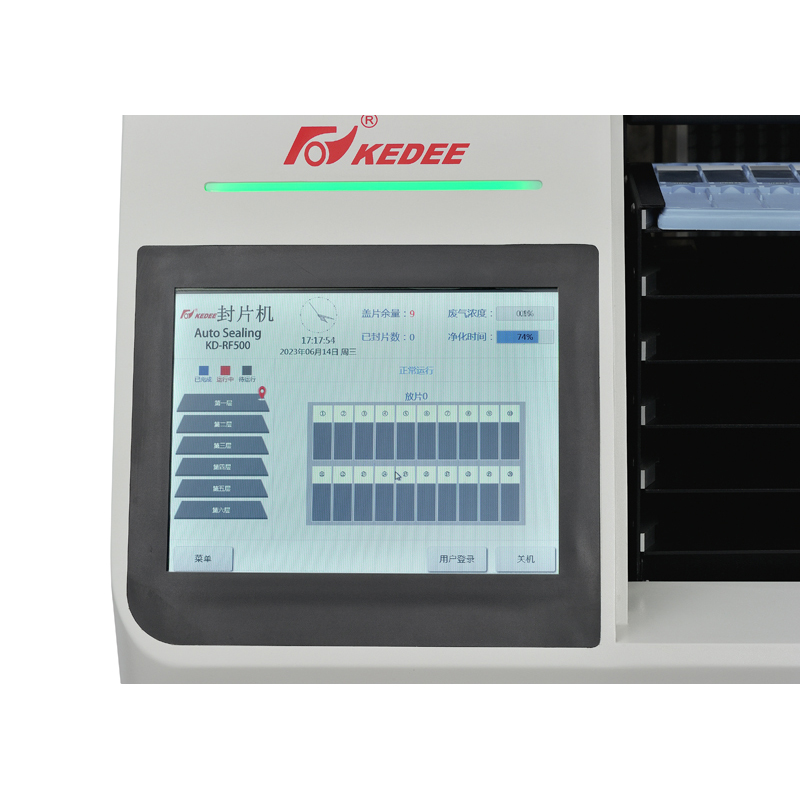 封片机采用10.4工控彩色触摸控制屏。WINDOWS操作系统,智能人机交互系统,操作便捷易